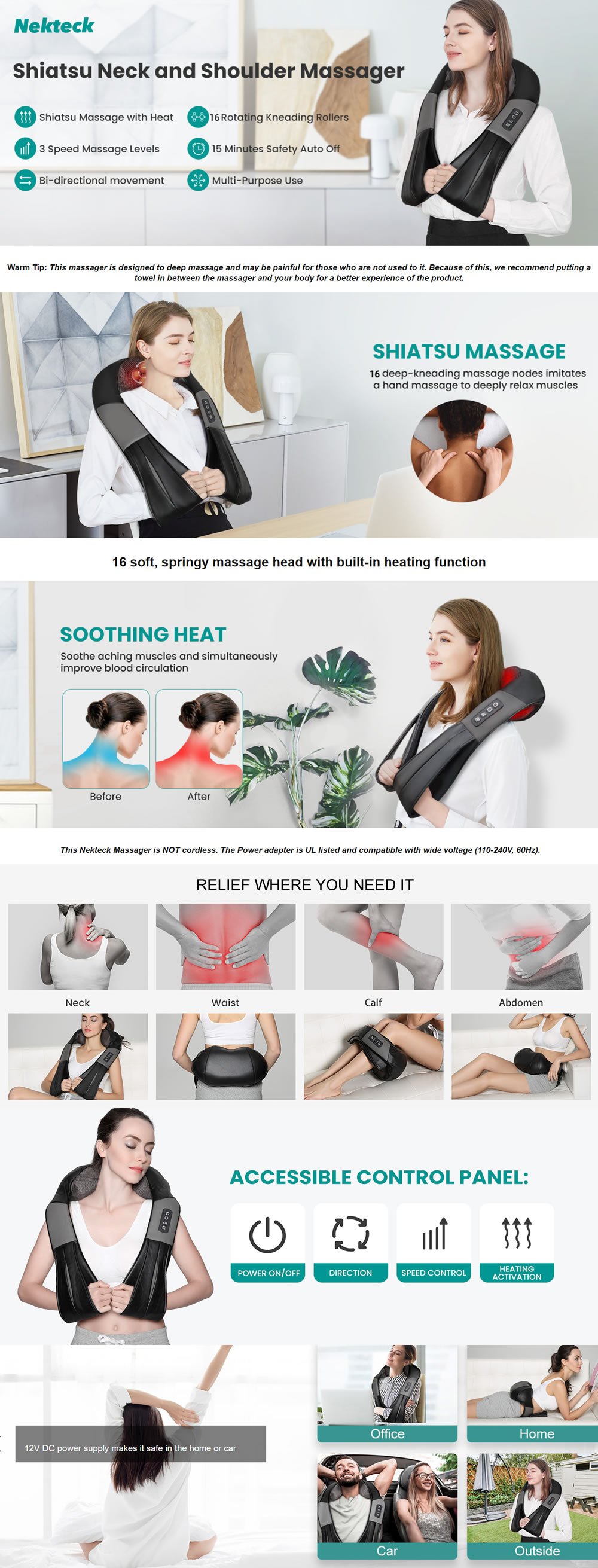 - Why Merchants Should Stock it?: The NEKTECK® Shiatsu Neck Massager is a category leader in personal wellness, consistently ranking as a bestseller across online marketplaces.
