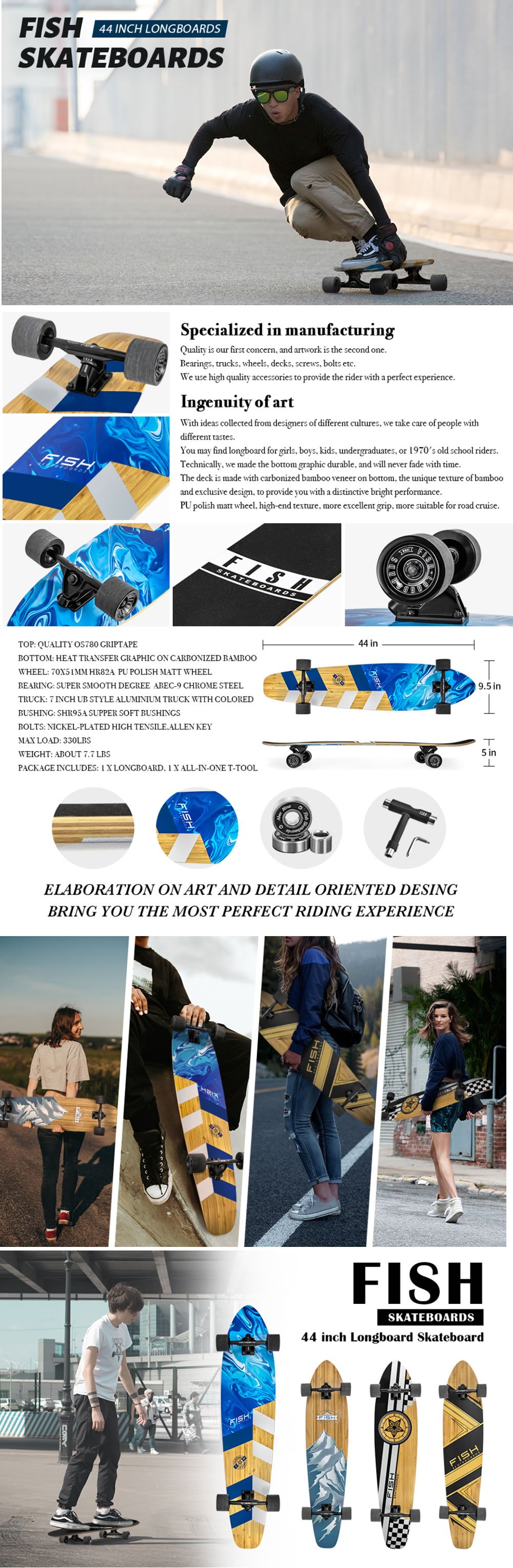 - The Fish Skateboards® 41-Inch Downhill Longboard, a premium cruiser engineered for performance, artistry, and profitability.