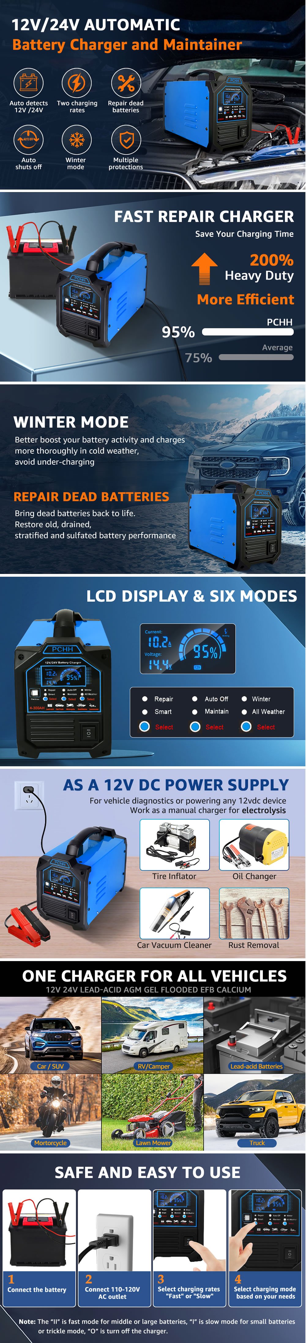 - The PCHH® Heavy Duty 12V/24V Automatic Battery Charger (BC-108) is a high-value, fast-moving SKU in the automotive and equipment accessories category, designed to meet the needs of consumers across multiple verticals.