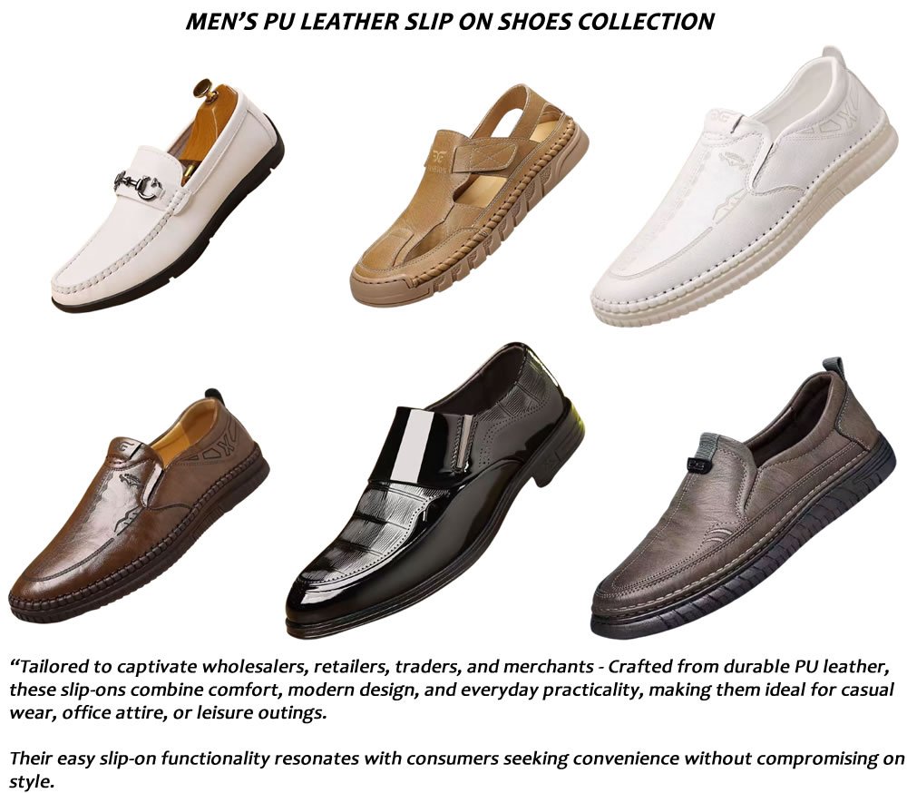 - This Men’s PU Leather Slip-On Shoes Collection – A stylish essential for consumers and a profitable opportunity for merchants.