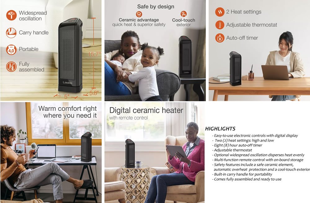 - The LASKO® Digital Ceramic Tower Heater with Remote Control (CT16670) is a fast-moving, high-margin SKU in the seasonal appliances category, designed to deliver both consumer satisfaction and merchant profitability.