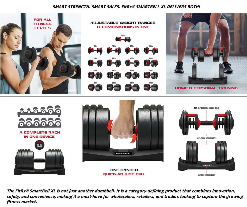 - Wholesalers and merchants are tapping into one of the hottest categories in fitness with the FitRx® SmartBell XL, 90LB Adjustable Dumbbell Set.