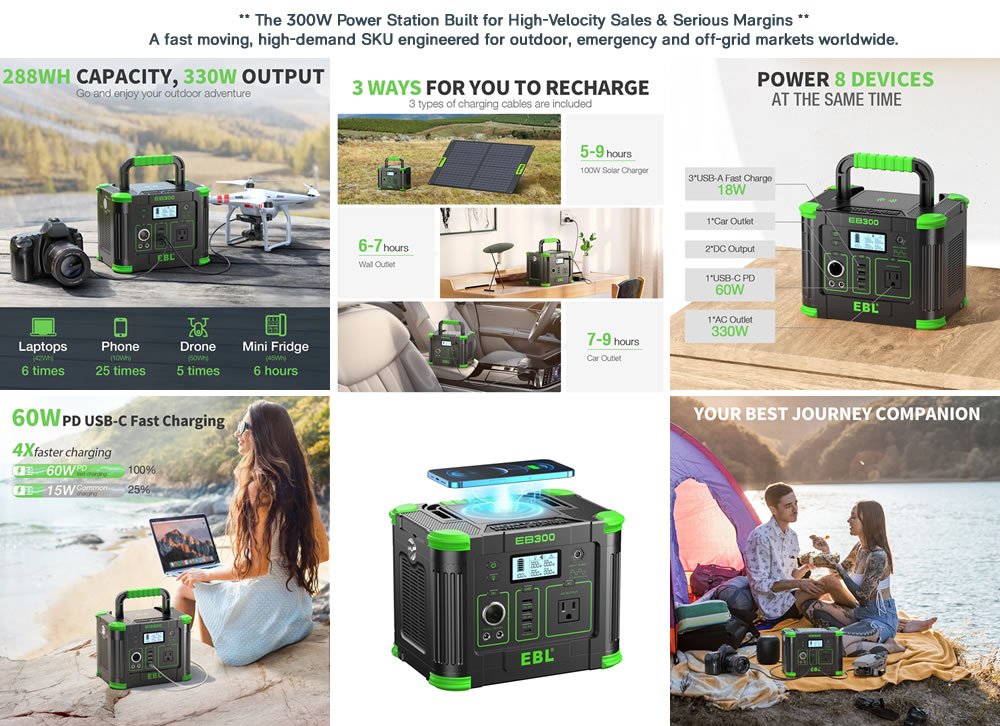 - For buyers seeking a proven, in‑demand portable power solution with strong profitability, the EBL® 300W Power Station stands out as a category leader.