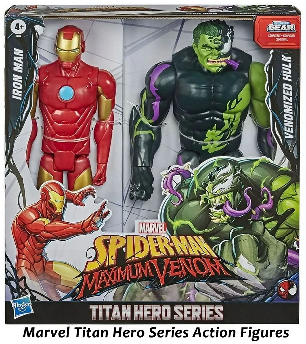 - The Marvel® Titan Hero Series continues to dominate the action figure category with this dynamic Spider-Man Maximum Venom edition, featuring Iron Man and the Venomized Hulk.
