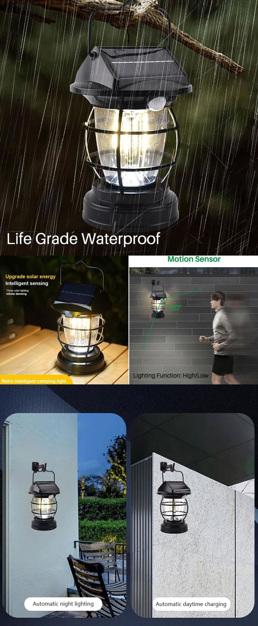 SOLAR-POWERED OUTDOOR CAMPING LANTERN | RETRO STYLE • LONG BATTERY LIFE • PORTABLE LED INNOVATION