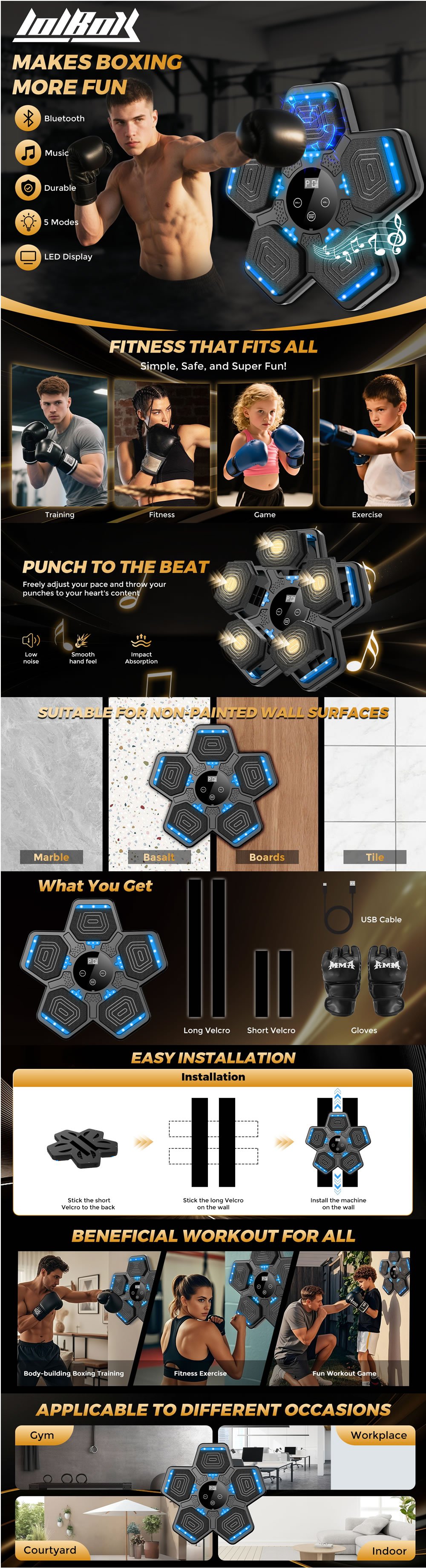 The LOLBOX® 2025 is redefining home fitness by merging boxing, rhythm, and smart interactivity into one compact unit. With Bluetooth connectivity, LED light cues, and music-synced workouts, it transforms training into an engaging game-like experience suitable for all ages. Built with a durable ABS + foam strike surface, it ensures both safety and performance, while its wall‑mountable design makes it ideal for apartments, gyms, or family spaces. Whether for cardio, stress relief, or fun group challenges, the LOLBOX® delivers high-demand appeal and strong resale velocity in the booming fitness-tech category.